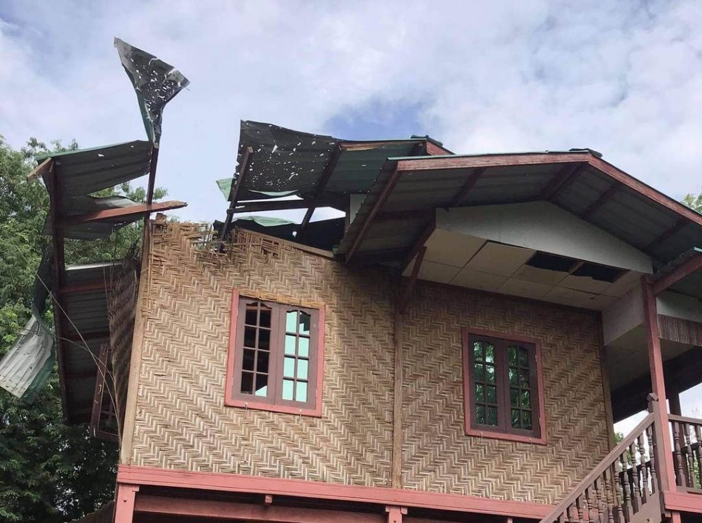 စစ်ကောင်စီက ၀င်ရောက်ပစ်ခတ်ခဲ့သောကြောင့် ပျက်စီးသွားသည့်နေအိမ်